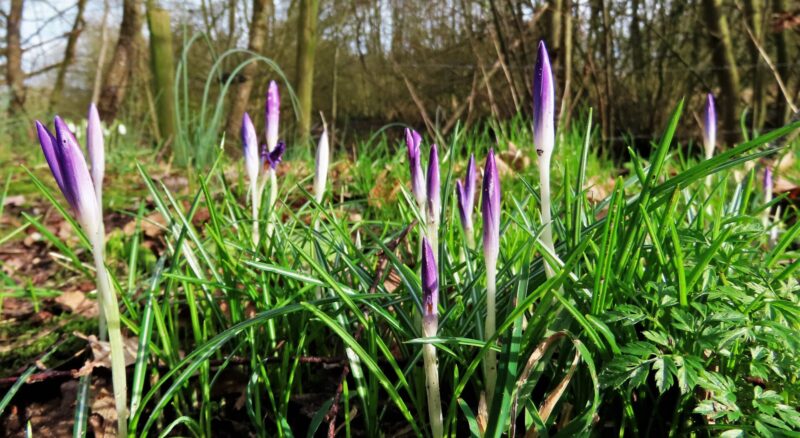 een enkele krokus in de berm